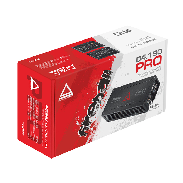 - Nominal power 2Ω (RMS): 4 x 190 W